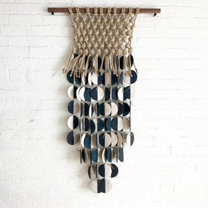 Materials: Stoneware Discs with Twine and Hemp Macrame