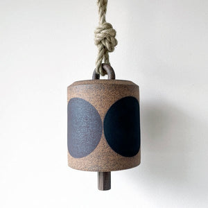 Wide wheel thrown bell in Tucker stoneware is hand painted with Four Black: Black, Dark Brown, Medium Brown & Golden Brown.